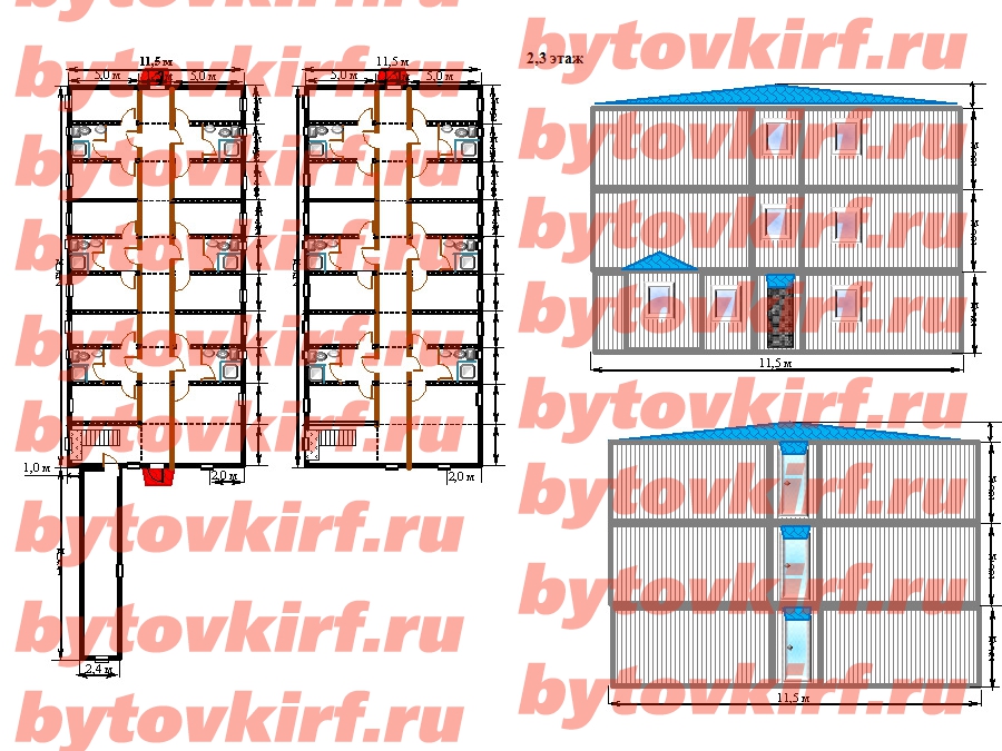 1. Блок-модуль БМ 11,5*24,0*2,5 м состоящий из 60 шт. Блок-контейнер БК 5,0*2,4*2,5м и 1 шт. БК 12,0*2,4*2,5м